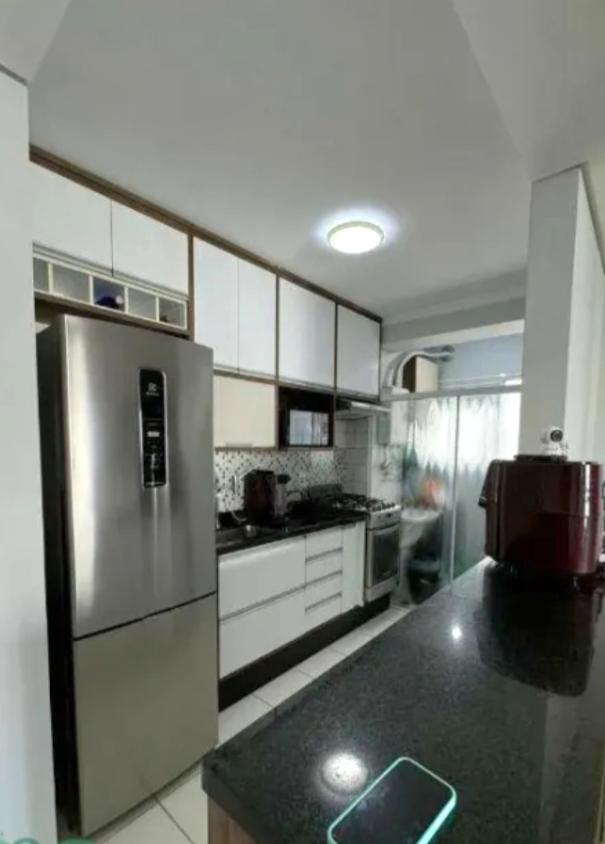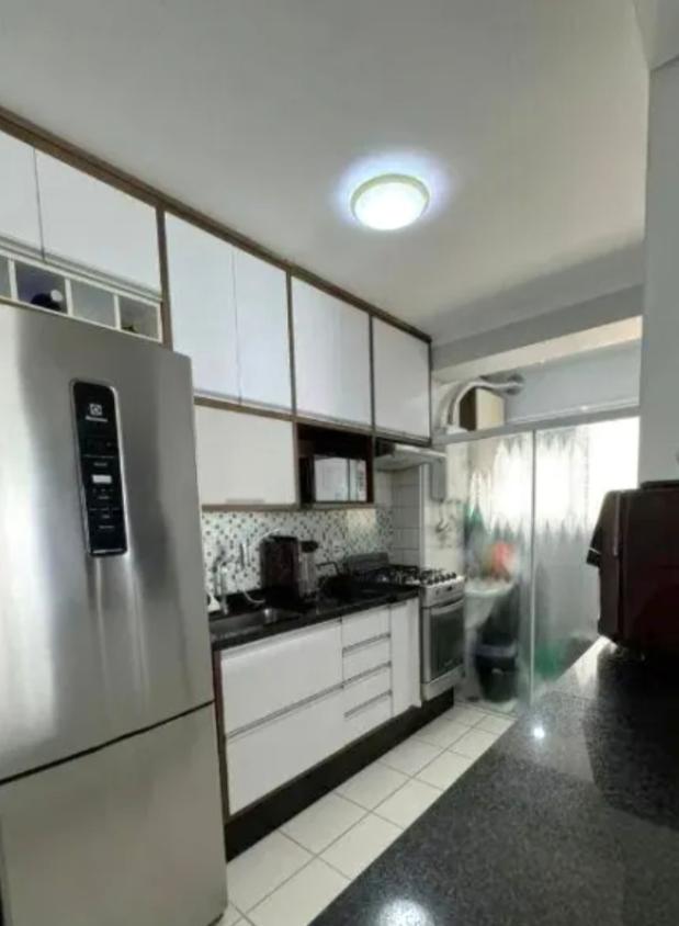 Sendo 2 dormitorios com 1 suite, sala 2 ambientes com sacada, cozinha com armários, 1 vaga de garagem.